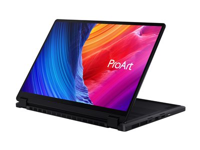 Voici le ProArt PX13 – votre ordinateur portable convertible de 13 pouces, conçu pour passer sans effort d'un format à l'autre, prêt à alimenter votre passion créative à tout moment. Son écran tactile OLED garantit la précision des couleurs pour un épreuvage sans faille, tandis que les ports d'E/S polyvalents permettent de connecter tous vos périphériques facilement. Cet ordinateur portable certifié NVIDIA  Studio renferme un GPU GeForce RTX  40 Series pour ordinateur portable, offrant des graphismes puissants et des performances d'IA de 321 TOPS. En outre, il intègre un AMD Ryzen  AI 9 HX 370 processor jusqu'à 50 TOPS, ce qui lui confère une puissance de traitement exceptionnelle. Grâce à des fonctions créatives améliorées par l'IA, une robustesse de niveau militaire et une grande autonomie, le ProArt PX13 transforme n'importe quel environnement en studio.
