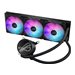 Caractéristiques | | Prise en charge de la modulation de largeur d'impulsions (PWM), moteur à trois phases, pâte thermique pré-appliquée, ARGB fans, tubes manchonnés (400 mm), vitesse du moteur de la pompe 800 - 2 600 tr/min, écran LED Anime Matrix, pompe Asetek de 8ème génération