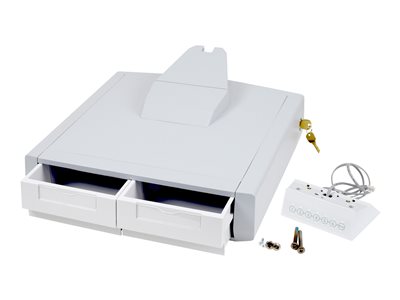 Mettez à niveau un chariot alimenté sans tiroir pour la livraison de médicaments en y ajoutant cet étage de tiroirs. La version double offre deux tiroirs moyens séparés.