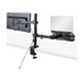 Contenu de l'emballage | | 2 x montures de moniteur VESA, 2 bras pivotants, pince de bureau, couvercle de pôle, clip de gestion de câble (pôle), embase à oeillet, 1 x plaque de serrage de l'illet, 4 x vis de fixation du plateau pour ordinateur portable, 2 x boutons de montage VESA, 5 x tampons en caoutchouc, 3 x vis pour tige de montage, clé hexagonale (4 mm), clé hexagonale (6 mm), 8 x vis M4 x 12, 8 x vis M5x x 12, 8 x vis M4x16, 8 x vis M5x16, 8 x rondelles