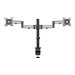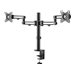 Créez une configuration à deux écrans élégante et stable, tout en économisant de l''espace. Cet élégant bras pour deux écrans à montage sur bureau apporte une solution économique et polyvalente à votre espace de travail ergonomique. Profitez d''une grande liberté de mouvement grâce aux deux bras pivotants et aux fonctions inclinaison, panoramique, rotation et réglage de la hauteur.Faites travailler votre espace de travail pour vousLe support pour plusieurs écrans vous offre la possibilité de configurer votre bureau comme vous le souhaitez. Chacun des bras articulés s''étend sur 38,6 cm pour s''adapter à vos besoins.Les bras flexibles à double pivotement facilitent le positionnement de vos écrans. Vous pouvez placer vos écrans face à vous ou même les faire pivoter de 180 degrés pour partager votre écran avec d''autres personnes.Conception profilée en aluminiumLe superbe support pour deux écrans utilise un design profilé en aluminium durable, avec une finition noire brillante attrayante. Le bras pour deux écrans peut supporter deux écrans compatibles VESA (75 x 75, 100 x 100) jusqu''à 32 pouces, avec un poids maximal de 8 kg par écran.Trouvez l''angle de visionnage idéalLe bras pour deux écrans vous permet de régler facilement et sans effort la position de vos écrans pour un visionnage optimal. Inclinez vos écrans de +30 à -30 degrés. Faire pivoter de +90 à -90 degrés vers la gauche ou la droite. Faites pivoter vos écrans en position portrait ou paysage grâce à la plaque VESA rotative à 360 degrés.Réglable en hauteurPlacez vos écrans à la hauteur souhaitée. La hauteur du support pour deux écrans est réglable le long de la perche de 39,8 cm.Facile à installerLe support pour plusieurs écrans est facile à installer, à l''aide de l''équerre de fixation à vis pour fixer le support au bord de votre bureau, de votre table ou de votre comptoir. Le montage VESA est doté d''une ouverture permettant de faire glisser facilement votre écran sur le support, puis de le fixer. Le système de gestion des câbles intégré vous permet de ranger vos câbles en toute discrétion.Le modèle ARMDUAL3 bénéficie de la garantie StarTech.com de 5 ans et de l''assistance technique à vie gratuite.