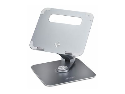 Le support pour ordinateur portable StarTech.com offre une solution polyvalente et ergonomique aux utilisateurs d'ordinateurs portables. Conçu avec une finition en aluminium élégante, ce support pour ordinateur portable pivote à 360° et est réglable en hauteur pour garantir un confort de visionnage et une posture optimale. Son design pliable le rend facile à transporter, tandis que la circulation d'air passive garantit que votre appareil reste frais pendant son utilisation. Des patins en caoutchouc et antidérapants maintiennent votre ordinateur portable en place, offrant une stabilité même pendant les sessions de travail intensives.Avec une charge maximale de 5 kg, ce support robuste convient à différentes tailles d'ordinateurs portables. Le réglage de la hauteur et de l'inclinaison permet aux utilisateurs de personnaliser leur configuration pour les positions assise et debout. Ses fonctionnalités pratiques et son design élégant font de ce support pour ordinateur portable un accessoire idéal pour la maison et le bureau, alliant confort et productivité.