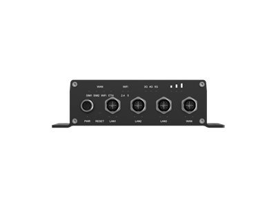 Interfaces | | WAN: 1 x 10/100/1G Ethernet - M12 8 broches LAN: 3 x 10/100/1G Ethernet - M12 8 broches Antenne: 4 x SMA Antenne: 2 x RP-SMA - Wi-Fi Antenne: 1 x SMA - antenne GNSS USB 2.0: 1 x USB de type A 4 broches