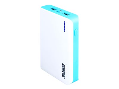 Batterie externe 10400 mAh : 2x USB (1A et 2.1A), 4x Indicateurs de charge lumineux, 1 X port Micro-USB de rechargement (câble fourni), Lampe torche intégré à la batterie, Batterie bicolore, Compatible tout smartphones et tablettes Garantie 2 Ans constructeur