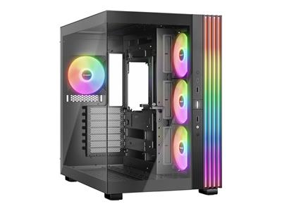 Fonctionnalités du boîtier système | | Capacité de 59,7 litres, design en double chambre, gestion intégrée des câbles, support VGA, carte graphique verticale prête, orientation verticale/horizontale, connecteur ARGB à 3 broches, conception anti-vibration, filtre antipoussières amovible, emplacements PCI-E rotatifs, bouton d'alimentation, bouton de réinitialisation