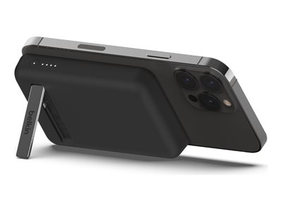Cette banque d'alimentation sans fil magnétique portable 5K + support délivre une puissance de charge sans fil de 7,5 W à votre appareil, sans câble ni besoin de le connecter à une source d'alimentation. Le support pliable offre un moyen pratique et mains libres de diffuser des flux ou de passer des appels vidéo pendant que vous chargez.