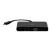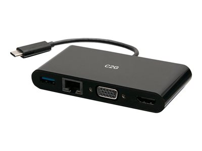 L'adaptateur multiport USB-C vers HDMI , VGA, USB-A et RJ45 se connecte aux ordinateurs portables équipés USB-C ou Thunderbolt 3. Il est parfait dans le cadre d'une solution de poste de travail, notamment pour les représentants commerciaux sédentaires pour qui la connectivité est essentielle, qu'ils soient au bureau ou à la maison.Cet adaptateur multiport offre un moyen léger, portable et facile de diffuser de l'audio/vidéo et de transférer des données. Connectez-vous à un ordinateur portable ou une tablette équipés USB-C, affichez du contenu audio/vidéo HDMI ou vidéo VGA, transférez des données et connectez-vous à un réseau.Prenant en charge des résolutions allant jusqu'à 4K à 30 Hz pour le HDMI et 1920 x 1200 à 60 Hz pour le VGA, cet adaptateur multiport permet de reproduire ou d'agrandir une image vidéo de haute qualité sur l'écran connecté. Le port de données USB-A prend en charge les transferts de données SuperSpeed USB 5 Gb/s, permettant le téléchargement jusqu'à 32 Go de données en moins d'une minute. Le port Ethernet permet d'obtenir une connectivité internet fiable avec des vitesses de transfert de fichier atteignant 1 000 Mbits/s.Remarque : lorsque les deux ports vidéo sont connectés, l'HDMI et le VGA affichent la même image avec une résolution allant jusqu'à 1080 p à 60 Hz.