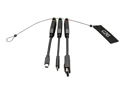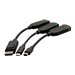 La boucle d'adaptateurs dongle 4K HDMI universelle est le complément parfait des salles de conférence, huddle spaces (bulles de travail), amphithéâtres ou salles de classe pour avoir la certitude que tout le monde peut se connecter. La configuration standard comprend des adaptateurs permettant de connecter pratiquement tous les appareils à l'écran de la salle, tout en prenant en charge une résolution vidéo jusqu'à 4K. Cette boucle d'adaptateurs comprend des adaptateurs HDMI vers DisplayPort, Mini DisplayPort ou port USB-C permettant de faire face à divers défis de connectivité.Adaptateur de style dongleIl est parfois peu pratique de connecter un adaptateur à un petit ordinateur portable ou à une tablette. L'adaptateur ne s'aligne pas toujours correctement, l'ordinateur se retrouvant alors de travers ou plus parfaitement à plat sur la table. L'adaptateur de style dongle offre davantage de flexibilité en permettant un meilleur positionnement lors du branchement à des ordinateurs plus fins ou légers.Adaptateurs avec code couleurLa bande colorée de chaque adaptateur vous fait gagner du temps et vous évite toute frustration en vous aidant à identifier rapidement l'adaptateur dont vous avez besoin.Languette intégréeSaisissez rapidement vos adaptateurs au moment où vous en avez besoin grâce à la languette intégrée qui peut être personnalisée avec le logo de votre entreprise ou de votre organisation. Une quantité minimum de commande est applicable aux languettes personnalisées.Boîtier de câble universelLe boîtier de câble universel se fixe directement sur le câble d'écran HDMI de la salle, pour que vos adaptateurs soient toujours à portée de main. La boucle d'adaptateurs se glisse vers le connecteur HDMI lorsque vous en avez besoin et peut être mise à l'écart lorsqu'elle n'a plus d'utilité, réduisant les contraintes exercées sur le câble HDMI et l'encombrement sur le bureau. La butée de câble en option se monte sur les câbles HDMI de 5 à 10 mm de diamètre, pour empêcher les adaptateurs de glisser trop loin sur le câble.Outils inclusLes outils de montage des adaptateurs et butées sont fournis pour simplifier le processus d'installation. L'outil innovant de mesure de câble HDMI réduit le temps de montage de la butée, en permettant d'identifier rapidement la taille d'insert de butée adaptée au câble HDMI.