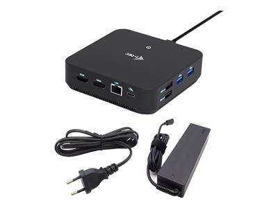 Caractéristiques | | Voyant DEL, interrupteur on/off, fente de verrouillage de sécurité (câble de verrouillage vendu séparément), boîtier en ABS, protection contre surchauffe, protection contre la surcharge, protection contre les surtensions, protection contre les court-circuits, prise en charge du clonage des adresses MAC, transfert de données jusqu'à 10 Gbps, jusqu'à 3 moniteurs de support, prise en charge d'interfaces VESA