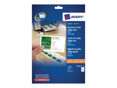 Blanc - 45 x 85 mm - 200 g/m² - 100 carte(s) (10 feuille(s) x 10 cartes de visite