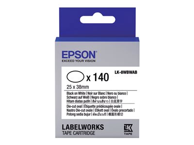 • Compatible uniquement avec l'étiqueteuse LabelWorks LW-Z900FK• Les étiquettes Epson sont conçues pour durer• Les étiquettes durables sont capables de supporter des températures extrêmes et sont résistantes à l'eau• Disponibles sous les formats suivants :• Étiquettes, de forme ronde, 25 mm de diamètre, 180 étiquettes par ruban• Étiquettes, de forme ovale, 25 x 38 mm, 140 étiquettes par ruban• Étiquettes, de forme rectangulaire, 25 x 38 mm, 140 étiquettes par ruban.