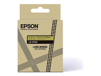Gris sur jaune : Rouleau (1,2 cm x 8 m) 1 cassette(s) boîte de suspension, cartouche de bande, pour LabelWorks LW-C410, LW-C610