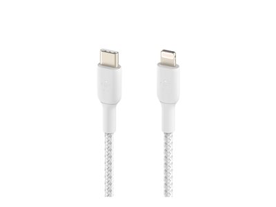 Le Câble Belkin BOOST?CHARGE tressé USB-C vers Lightning vous permet de connecter votre iPhone ou iPad à un chargeur rapide USB-C ou à un ordinateur compatible USB-C pour une augmentation rapide de la puissance ou pour synchroniser des photos et vidéos. Le Belkin CAA004 prend en charge une alimentation allant jusqu'à 30 W pour une charge plus rapide de votre appareil.