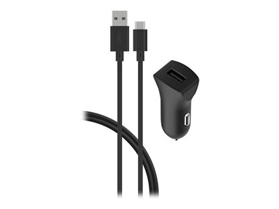 Adaptateur d'alimentation pour voiture - 2.4 A (USB) - sur le câble : USB-C - noir