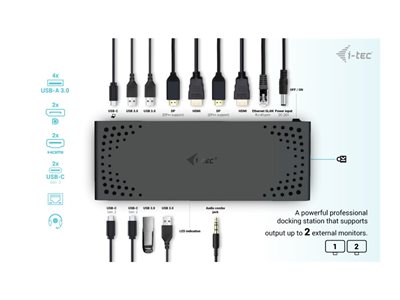 Interfaces | | 2 x audio / vidéo - DisplayPort - DisplayPort 20 broches 2 x audio / vidéo - HDMI - HDMI de 19 broches de type A 1 x USB-C 3.2 Gen 2 - 24 pin USB-C 4 x USB-A 3.2 Gen1 - USB 9 broches type A 1 x réseau - 10Base-T/100Base-TX/1000Base-TX - RJ-45 1 x combo jack microphone/casque - prise audio de 3,5 mm 1 x USB-C/Thunderbolt 3 avec alimentation électrique (100 W) - 24 pin USB-C