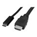 Ce câble adaptateur USB-C vers HDMI offre une solution pratique de connexion directe de votre appareil DisplayPort sur USB Type-C à votre moniteur, télévision ou vidéoprojecteur HDMI. L''adaptateur prend en charge une distance de connexion jusqu''à 1 m et est compatible avec les appareils USB-C prenant en charge DP alt mode, tels que MacBook, ChromeBook Pixel et Dell XPS modèles 15 et 13. Il est également compatible avec les ports Thunderbolt 3.Une installation discrèteAvec une longueur de 1 m, ce câble adaptateur fournit une connexion directe qui élimine les adaptateurs et le câblage superflus, garantissant ainsi une installation soignée et professionnelle. Pour des installations plus longues, nous proposons également un CDP2HDMM2MB" text="Câble USB-C vers HDMI 2 m, ce qui vous permet de choisir la longueur de câble adaptée à vos besoins d''installation personnalisée.Connexion simple par USB Type-CLe câble adaptateur est facile à connecter grâce à la polyvalence et à la commodité du port USB Type-C de votre appareil. USB-C est un connecteur réversible. Peu importe comment vous le raccordez, l''adaptateur se connectera toujours. Plus de frustrations pour l''insérer correctement lorsque vous raccordez votre ordinateur à votre poste de travail ou partage de bureau.Qualité d''image remarquableAvec une résolution quatre fois supérieure à la haute définition 1080p, vous serez impressionné par la qualité d''image d''un moniteur 4K ou d''une télévision. Ce câble adaptateur vous permet d''exploiter les capacités vidéo de votre connexion USB Type-C pour bénéficier de la qualité remarquable de l''Ultra HD sur votre écran 4K.L''adaptateur est rétrocompatible avec les écrans 1080p, garantissant ainsi son fonctionnement dans les applications HD à la maison et au travail.Le modèle CDP2HDMM1MB bénéficie de la garantie StarTech.com de 3 ans et de l''assistance technique à vie gratuite.Remarque :Votre appareil compatible USB-C doit prendre en charge la vidéo (DP alt mode) pour fonctionner avec cet adaptateur.
