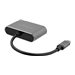 Adaptateur multiport USB-C - Aluminium - Câble intégré de 15 cmCet adaptateur USB Type-C vers VGA et HDMI offre une solution portable pour connecter votre ordinateur portable USB-C à un écran VGA ou HDMI. L'adaptateur vidéo multiport fonctionne également comme un répartiteur, ce qui vous permet de transmettre simultanément un signal vidéo identique à deux moniteurs distincts (1 source HDMI et 1 source VGA).Connectivité vidéo 2-en-1, idéale pour voyagerNe vous encombrez plus de multiples adaptateurs grâce à cet adaptateur vidéo USB-C 2-en-1. Avec ses sorties VGA et HDMI, vous pouvez facilement connecter votre ordinateur portable à n'importe quel écran doté d'un port HDMI ou VGA en utilisant cet adaptateur multiport.Grâce à son robuste boîtier en aluminium, l'adaptateur peut être transporté sans problème dans votre sac de voyage.Résolution Ultra HD 4K à 30 HzLa sortie HDMI sur cet adaptateur vidéo USB-C prend en charge les résolutions UHD jusqu'à la résolution 4K à 30 Hz, tandis que la sortie VGA prend en charge les résolutions HD jusqu'à 1920 x 1200.Connectivité élégante pour votre MacBook, MacBook Pro ou tout autre ordinateur portableL'adaptateur vidéo USB-C est doté d'un boîtier gris sidéral et d'un câble USB-C intégré conçus pour s'accorder avec votre MacBook ou MacBook Pro gris sidéral. L'adaptateur est compatible avec les périphériques USB-C DP Alt Mode.