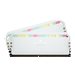 Fonctions | | Dual-path Heat Xchange (DHX), anodized aluminum heatspreader, éclairage RGB dynamique multi-zone, support Corsair iCUE, 12 LED CAPELLIX RGB ultra-lumineuses à adressage individuel, Intel Extreme Memory Profiles (XMP 3.0), carte circuit imprimé de haute performance, circuit de gestion de l'énergie (PMIC) intégré pour le surcadençage., support de régulation de la tension, mémoire sans tampon