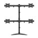 Contenu de l'emballage | | 4 x assemblages de plaques VESA, pôle supérieur, pôle inférieur, connecteur de pôle, base, 4 x bras de montage, 4 x guides-câbles de bras, 2 x guides-câbles de bras, 2 x guides-câbles pour poteaux, 2 x ensembles de tête de verrouillage, 4 x embouts, collier de base, clé hexagonale (3 mm), clé hexagonale (4 mm), clé hexagonale (6 mm), 4 x vis à tête plate, 16 x vis M4x12, 16 x vis M5x12, 16 x rondelles D5