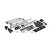 Contenu de l'emballage | | 4 x vis M5 x 14, 4 x vis M6 x 14, 4 x vis M6 x 30, 4 x vis M8 x 20, 4 x vis M8 x 30, 8 x entretoises (petites), clé allen, 8 x rondelles, 4 x vis M8 x 50, 8 x vis M8 x 16, 3 x vis M6 x 25, 7 x vis M4 x 6, 2 x vis M6 x 14, 6 x vis M6 x 8, 4 x vis M8x x 25 mm, 2 x vis M5 x 8, 8 x entretoises (grandes), clé, base du milieu, jambe gauche, jambe droite, couvercle gauche, couvercle droit, plaque de support, plaque universel, 2 x couvercles en plastique, 2 x supports d'adaptateur, colonne, poignée en plastique, couvercle supérieur, plaque de connexion, étagère de caméra, étagère de DVD