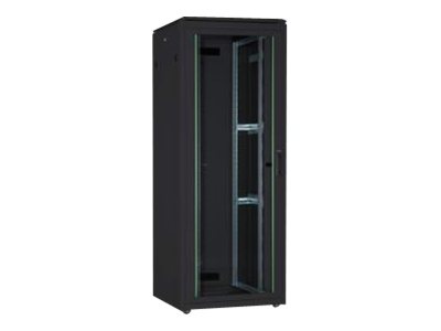 Porte arrière verrouillable, profondeur réglable, panneau latéral verrouillable, panneau latéral amovible, porte en verre, gestion des câbles verticale