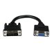 Le câble DVI vers VGA de 20 cm DVIVGAMF8IN permet d'adapter un connecteur mâle DVI à un connecteur femelle VGA et de connecter un écran plat à un PC ou à un MAC avec sortie DVI-I.La connexion femelle VGA ajoutée par le dongle se trouve à environ 20 cm de la connexion de sortie DVI, ce qui réduit la compression et évite d'endommager le connecteur DVI tout en diminuant le blocage éventuel des autres ports libres.L'adaptateur mâle DVI vers VGA femelle est fait de matériaux de haute qualité garants de sa fiabilité. Il bénéficie d'une garantie à vie StarTech.com.Remarque : Ce produit est conçu pour assurer les connexions entre les appareils DVI-I et VGA. Si votre périphérique utilise un connecteur DVI-D, reportez-vous au convertisseur vidéo haute résolution DVI vers VGA de StarTech.com DVI2VGACON.