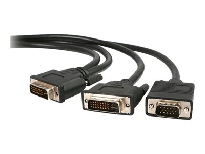 Le câble répartiteur DVIVGAYMM6 DVI-I (mâle) vers DVI-D (mâle) et HD15 VGA (mâle) de 1,8 m vous permet de connecter un écran DVI-D et un écran VGA sur un seul port de carte vidéo DVI-I.Offrant une solution économique et fiable à deux écrans, le câble en Y DVI-I vers DVI-D/VGA de StarTech.com bénéficie de la garantie à vie.Remarque : La possibilité de gérer à la fois un écran numérique et un écran analogique dépend des capacités de votre carte vidéo. Si elle ne prend pas cette fonction en charge, les écrans ne pourront pas fonctionner en même temps.