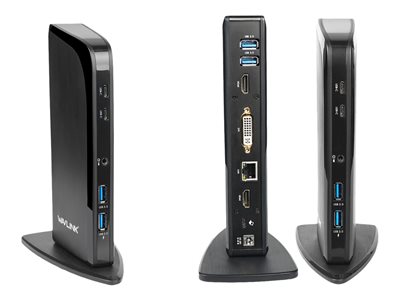 Station d'accueil universelle USB-C et USB-A avec Power Delivery 65W : 2 x USB-C 3.2; 4 x USB-A 3.0; 1 x Ethernet; 2 x HDMI; 1 x DVI (VGA par adaptateur DVI/VGA); 1 x audio/micro.DisplayLink.Affichage triple écran : HDMI + HDMI + DVI (ou VGA).Affichage double écran : HDMI + HDMI; HDMI + DVI (ou VGA).Accessoires fournis : Alimentation secteur; Câble USB-C 3.2 (E-Mark Chip); Câble USB 3.0; Adaptateur DVI vers VGA; Manuel.