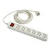 MULTIPRISE (NF) MUNIE DE 6 PRISES AVEC INTERRUPTEUR.Prise sécurisée et normalisée avec Terre. Couleur blanche. Protection enfant. Câble 1.5m. 3500W. 16A.