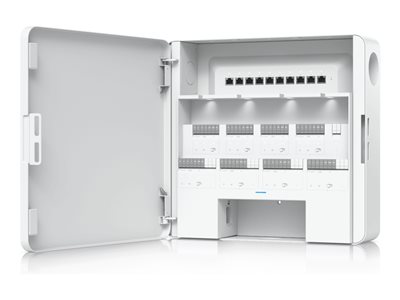 Détails d'interface | | 8 x entrée digitale 8 x entrée digitale Entrée digitale 8 x relais de verrouillage 4 x sortie auxiliaire 8 x Gigabit Ethernet 2 x Gigabit Ethernet
