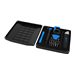 Contenu de l'emballage | | Poignée de tournevis, 4 embouts de tournevis - phillips PH000, PH00, PH0, PH1, outil de câblage, ventouse, pincettes courbes, outil d'éjection de carte SIM, outil d'ouverture, 6 choix d'ouverture, outil d'ouverture Jimmy, 2 embouts de tournevis - pentalobe P2, P5, 3 embouts de tournevis - plat 1, 2,5, 4 mm, 2 embouts de tournevis - torx T4, T5, 3 embouts de tournevis - Torx inviolables TR6, TR8, TR10, embout de tournevis - trois points Y000