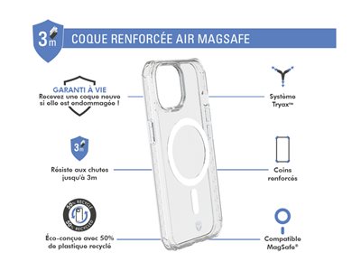Caractéristiques | | Système Tryax, arêtes surélevées, technologie de coussin d'air, built-in magsafe magnet, trous pour haut-parleurs, découpe du bouton