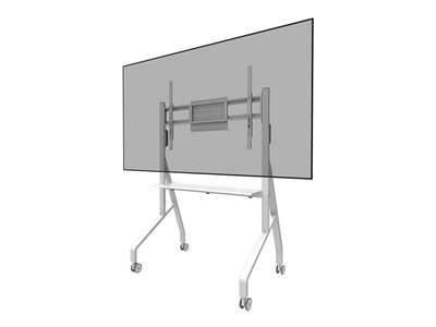 Neomounts FL50-525WH1 MOVE Go est un support mobile pour écrans plats jusqu'à 86" avec une capacité de poids maximale de 76 kg. Grâce à sa conception robuste et aux stabilisateurs d'écran tactile inclus, MOVE Go est une solution parfaite pour les écrans tactiles. Le support de sol est réglable manuellement en 4 positions de hauteur préréglées, de 106 à 136 cm.Le MOVE Go de Neomounts est livré partiellement pré-assemblé et l'installation peut se faire en quelques minutes. Le chariot est équipé de poignées pratiques et de quatre roulettes robustes de 7,5 cm à double blocage qui vous permettent de déplacer et d'utiliser le support de sol où vous le souhaitez. Grâce à ses grandes roues, le FL50-525WH1 n'a aucune difficulté à franchir les seuils ou les tapis. Une étagère multimédia (montable à l'avant et à l'arrière) d'une capacité de poids maximale de 10 kg et un support de matériel audiovisuel sont inclus et optionnels pour l'installation.