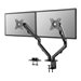 Le Neomounts FPMA-D650D est un support de bureau à mouvement complet pour deux écrans plats jusqu'à 27" avec une capacité de poids maximum de 7 kg par écran. Grâce à la technologie polyvalente d'inclinaison, de rotation et de pivotement, le support de bureau peut être ajusté à n'importe quel angle de vue souhaité et tirer pleinement parti des capacités des écrans plats.De plus, le support est doté d'un réglage en hauteur assisté par ressort et d'un réglage en profondeur pour créer la position de travail parfaite. Les clips de gestion des câbles intelligents garantissent un acheminement organisé des câbles.Le FPMA-D650D a deux points de pivotement et convient aux écrans avec un gabarit de fixation VESA. Des fixations VESA différentes peuvent être utilisées avec l'une des plaques d'adaptation VESA de Neomounts. Le Neomounts FPMA-D650D est livré avec une pince de bureau et un illet traversant.