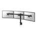 Le support de bureau Neomounts, modèle FPMA-D700D3, est un montage inclinable, pivotant et rotatif, pour 3 écrans plats jusqu'à 27" (69 cm). Ce support est un excellent choix pour économiser de l'espace sur les bureaux en l'installant à l'aide d'une pince de bureau ou illet à monter.La technologie de Neomounts, rotation de 360° et pivot de 45°, permet au montage de changer l'angle de vue pour profiter pleinement des capacités de l'écran. Le montage est facile, réglable en hauteur de 32 à 42 centimètres. Profondeur 7 centimètres. Une gestion des câbles unique cache et achemine les câbles pour garder le lieu de travail bien rangé.
