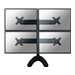 Des maux de cou et de dos peuvent être évités en utilisant un montage ergonomique. Idéal pour une utilisation dans les bureaux et sur les comptoirs ou dans une zone de réception. Le support de bureau Neomounts, modèle FPMA-D700DD4, est un montage inclinable, pivotant et rotatif, pour 4 écrans plats jusqu'à 30" (76 cm). Ce support est un excellent choix pour économiser de l'espace sur les bureaux en l'installant à l'aide d'une pince de bureau ou illet à monter.La technologie de Neomounts, inclinaison de 180°, rotation de 360° et pivot de 180°, permet au montage de changer l'angle de vue pour profiter pleinement des capacités de l'écran. Le montage est facile, réglable en hauteur jusqu'à 70 centimètres, largeur 52 à 83 centimètres. Profondeur 15 centimètres. Une gestion des câbles unique cache et achemine les câbles pour garder le lieu de travail bien rangé. Neomounts FPMA-D700DD4 a un point de pivot et est adapté pour 4 écrans jusqu'à 30" (76 cm).