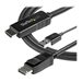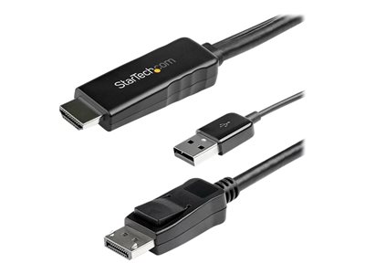 Ce câble HDMI vers DisplayPort de 2 m avec alimentation USB vous permet de connecter une source vidéo HDMI, comme votre ordinateur portable, votre ordinateur de bureau, votre lecteur Blu-ray ou votre appareil photo, à un moniteur ou un écran DisplayPort sans câbles vidéo supplémentaires. Ce câble adaptateur est doté de connecteurs mâles, ce qui vous permet de connecter votre source vidéo directement à l''écran, sans adaptateur ni câble supplémentaire.Connectivité pratiqueLe câble de conversion actif HDMI 1.4 vers DisplayPort 1.2 garantit une installation plug-and-play et une configuration simple ne nécessitant aucun logiciel ni pilote. L''adaptateur est alimenté par un port USB, ce qui vous évite de recourir à des adaptateurs d''alimentation externes.Qualité d''image remarquableGrâce à la prise en charge du 4K à 30 Hz, vous obtenez des images d''une incroyable netteté et clarté, plus riches et plus réalistes qu''avec le HD traditionnel et offrant une bien meilleure qualité de détail. Le câble adaptateur HDMI vers DisplayPort diffuse du contenu Ultra HD sur votre moniteur DisplayPort et prend en charge le son audio surround 7.1.L''adaptateur HDMI vers DisplayPort est rétrocompatible avec les écrans 1080p et 1440p, ce qui en fait l''accessoire idéal pour assurer la pérennité de votre configuration actuelle pour la vidéo 4K.Recommandé par les professionnels de l''informatique depuis 1985StarTech.com effectue des tests de compatibilité et de performance approfondis sur tous nos produits pour s''assurer que nous respectons ou dépassons les normes du secteur et que nous fournissons des produits de haute qualité aux professionnels de l''informatique. Forts d''une vaste expertise des produits, nos conseillers techniques StarTech.com locaux travaillent directement avec nos ingénieurs de StarTech.com pour fournir une assistance à nos clients avant et après la vente.Le modèle HD2DPMM2M bénéficie de la garantie StarTech.com de 2 ans et de l''assistance technique à vie gratuite.