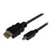 Le câble haute vitesse HDADMM2M de 2 m HDMI vers HDMI Micro vous permet de brancher des périphériques équipés d'un port HDMI Micro vers un écran/appareil muni d'un port HDMI standard. Il constitue un moyen économique de connecter des appareils HDMI d'avant-garde et de prochaine génération à la technologie HDMI existante.Le câble HDMI/HDMI Micro est équipé de connecteurs plaqués or de qualité supérieure garantissant une connectivité maximale. Il bénéficie de la garantie à vie StarTech.com.