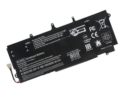 Batterie de portable (standard) (équivalent à : HP 722297-005, HP BL06, HP BL06XL, HP HSTNN-IB5D, HP HSTNN-DB5D, HP HSTNN-W02C, HP 722236-2C1, HP 722236-171) - lithium-polymère - 6 cellules - 3750 mAh - 42 Wh - noir - pour HP EliteBook Folio 1040 G1, 1040 G2