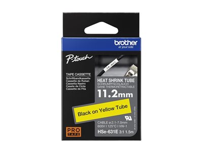 Cette gaine thermo-rétractable Brother 11,2mm HSE-631E est spécialement conçue pour le marquage et l'identification permanents des câbles et des fils. Avec un coefficient de rétractation de 3:1, le ruban HSE-631E noir sur jaune est recommandé pour une utilisation avec des câbles de 2,1mm à 7,0mm de diamètre. Compatible avec les étiqueteuses P-touch affichant le logo HS ou HSE sur l'emballage du ruban.