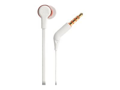 Les écouteurs intra-auriculaires JBL T210 sont légers, confortables et compacts. Sous les boîtiers à finition métallique, une paire de haut-parleurs graves de 8,7 mm propulsent des graves de choc, en reproduisant le puissant son Pure Bass de JBL que vous connaissez dans les salles de concert, les stades et les studios d'enregistrement du monde entier. En outre, la télécommande à une touche vous permet de commander la lecture de la musique et de répondre instantanément aux appels avec un microphone intégré, vos JBL T210 sont ainsi vos compagnons quotidiens au travail, au domicile et en déplacement.