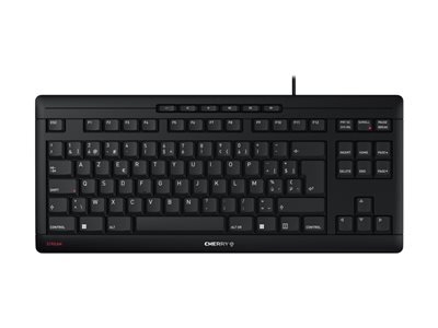 Pour les amateurs de claviers silencieux, le STREAM KEYBOARD TKL est la version réduite du STREAM KEYBOARD classique et procure la même sensation de frappe. Les deux ont un design identique mais diffèrent sensiblement sur un point : sur la version TKL, le pavé numérique a été retiré pour gagner de la place. Ceci est un véritable avantage dans certaines applications.Parmi les similitudes entre ces deux claviers filaires, on trouve la technologie à ciseaux CHERRY SX. Au cœur de la famille STREAM, elle permet aux écrivain.es prolifiques et exigeant.es de travailler de manière productive. Le point de pression est parfait et garantit une frappe précise et silencieuse.Avec un design réduit, sans pavé numérique, le STREAM KEYBOARD TKL est idéal pour ceux qui utilisent peu le pavé numérique et veulent garder une diposition standard. Ce modèle compact permet de gagner de la place, au bureau comme à la maison. Vous n'avez plus qu'à vous concentrer sur l'essentiel. Dans le secteur industriel, ce clavier passe-partout est idéal pour les tiroirs 19 pouces. Dans les environnements difficiles, vous pouvez le protéger avec une membrane WetEx, spécialement adaptée aux dimensions du clavier et disponible en option.Toute personne qui passe chaque jour de longues heures assise à un bureau sait qu'une position ergonomique est essentielle pour prévenir tensions et douleurs au niveau du dos, des mains, des bras et du cou. Les dimensions réduites sont ici un avantage ergonomique. Pour les droitiers, la souris et le clavier sont plus proches. Le bras droit n'a pas besoin d'être écarté, ce qui permet d'adopter une bonne position de travail. Selon l'assurance maladie sociale allemande contre les accidents (DGUV), les claviers TKL favorisent une posture plus naturelle et ergonomique.La certification GS " Sécurité contrôlée " et le label allemand " Blauer Engel " (Ange bleu) décernés pour ce clavier sont une preuve de ces atouts. Le label GS tient compte de toutes les directives et réglementations européennes applicables en matière de protection de la santé. Cela implique, par exemple, que les lettres des touches soient clairement lisibles et le restent – une condition importante pour travailler sans se fatiguer.Le label de protection de l'environnement " Blauer Engel " est un gage de sécurité lorsque l'on veut acheter responsable. Il est une garantie que des normes élevées en matière de propriétés environnementales, sanitaires et fonctionnelles ont été suivies pour le processus de développement du produit. Par exemple, le STREAM KEYBOARD TKL ne contient aucun matériau d'emballage en plastique.Par ailleurs, le CHERRY STREAM TKL dispose aussi de LED d'état très pratiques intégrées aux touches MAJ et DEFIL. Bien que cette caractéristique ne soit généralement utilisée que dans les gammes de prix supérieures, elle est désormais standard sur presque tous les claviers CHERRY. Ce clavier filaire est Plug&Play, prêt à être utilisé sans aucune installation de pilote. 6 touches supplémentaires s'avèrent aussi bien pratiques et utiles au quotidien. Elles permettent de contrôler directement les applications multimédia.Vous passez de nombreuses heures devant votre PC et cherchez un clavier peu encombrant sans pavé numérique ? Vous voulez aussi un clavier avec des normes de qualité élevées et respectant votre santé ? Alors le STREAM KEYBOARD TKL est ce qu'il vous faut.