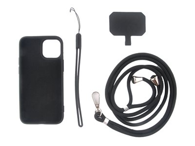 Coque de protection pour téléphone portable - avec sangles de cou et de poignet - silicone liquide - noir - pour Samsung Galaxy A25