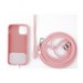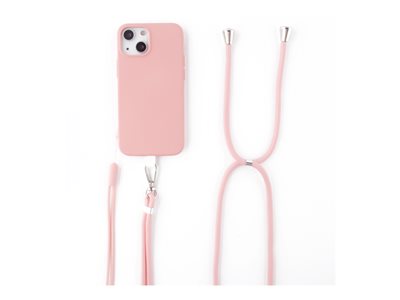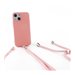 Coque de protection pour téléphone portable - avec sangles de cou et de poignet - silicone - rose - pour Samsung Galaxy A35