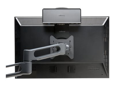 Si vous intégrez une station d'accueil Kensington comme le SD3600 dans votre système, mais que l'espace de votre bureau est limité, la plaque de fixation pour station d'accueil est le complément idéal. Elle vous permet de fixer la station d'accueil au dos de votre écran compatible VESA, même s'il est attaché à un bras de moniteur. La plaque de fixation présente également des encoches spéciales qui vous permettent d'ajuster le placement de la station d'accueil à votre endroit préféré.