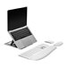 Grâce au rehausseur ergonomique et refroidissant Easy Riser Go avec SmartFit de Kensington , vous pouvez régler la hauteur de votre écran tout en profitant d'une meilleure circulation de l'air. Doté d'un design 2-en-1 élégant, il permet d'ajuster la hauteur et l'inclinaison afin d'améliorer la posture, la position du regard et le confort des épaules et du cou, tout en s'assurant que les composants internes de l'ordinateur portable ou de la tablette ne surchauffent pas. Ses patins antidérapants empêchent tout glissement, ses parties rembourrées maintiennent votre appareil en place et son design pliable facilite le transport. S'utilise avec un clavier et une souris externes (vendus séparément). Ce produit est compatible avec les ordinateurs portables et tablettes jusqu'à 14"