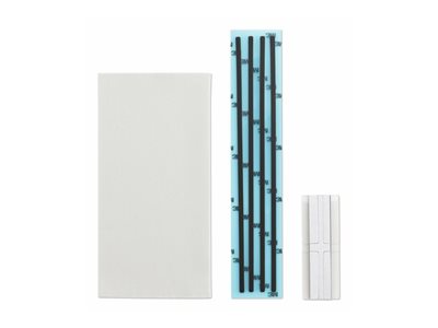 4 bandes magnétiques, 4 bandes adhésives doubles face en triangle pour ordinateurs portables, 4 attaches de montage pour moniteurs, chiffon de nettoyage