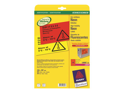 Adhésif permanent - rouge fluo - A4 (210 x 297 mm) 25 étiquette(s) 1 étiquettes