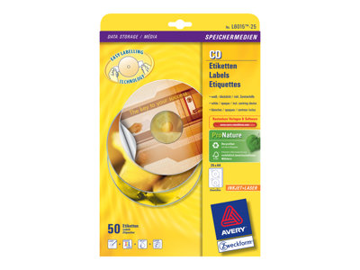 Blanc - rond 117 mm 50 étiquette(s) (25 feuille(s) x 2) étiquettes pour CD/DVD