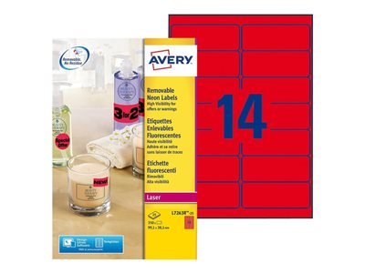 Rouge fluo - 38.1 x 99.1 mm 350 étiquette(s) (25 feuille(s) x 14 étiquettes